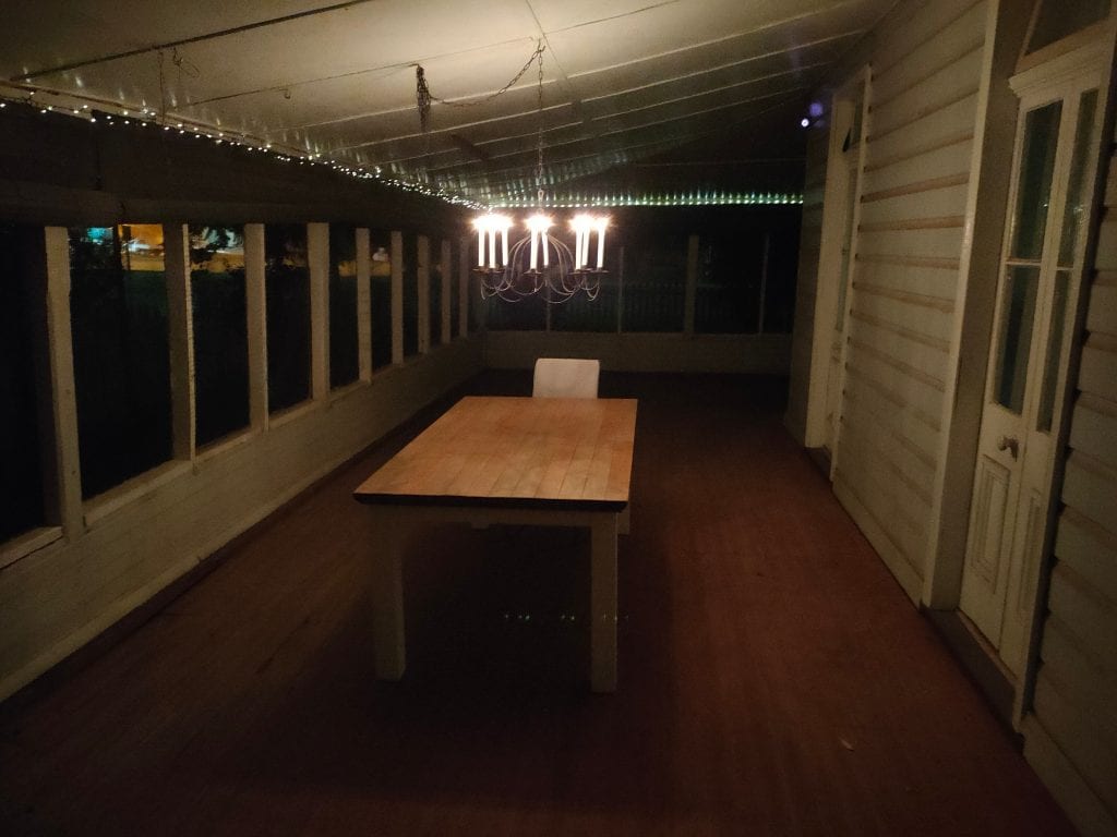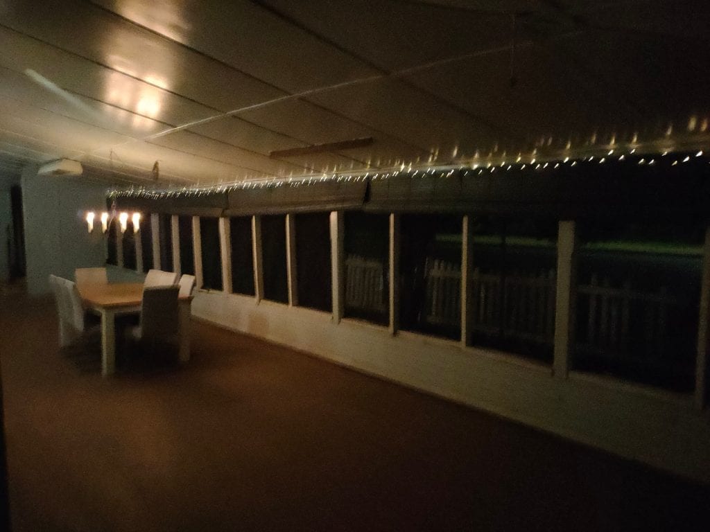 When I first got the keys for this place late last year, Marama and Emily (my daughter) came up. They went up to the local shops and came back with housewarming gifts. Emily’s gift was a set of fairy lights. She thought they’d look nice along the verandah. She was right – they look amazing along the verandah. They’ve got that great, hiddle-de-piggldy, haphazard layout. They’re a warm white tone and they remind me of those wedding venues everybody loves. Honestly, this verandah is twelve feet wide and runs along the front and down one side of the house. I’ve played gigs at weddings that have had less groovy spaces for the ceremony!  The fairy lights really make it, but… they only go down one side. There were only 200 fairy lights. The job calls for 400. No biggie, we’ll go and get more.